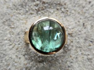Goldring schmal gehämmert Turmalin grün 2